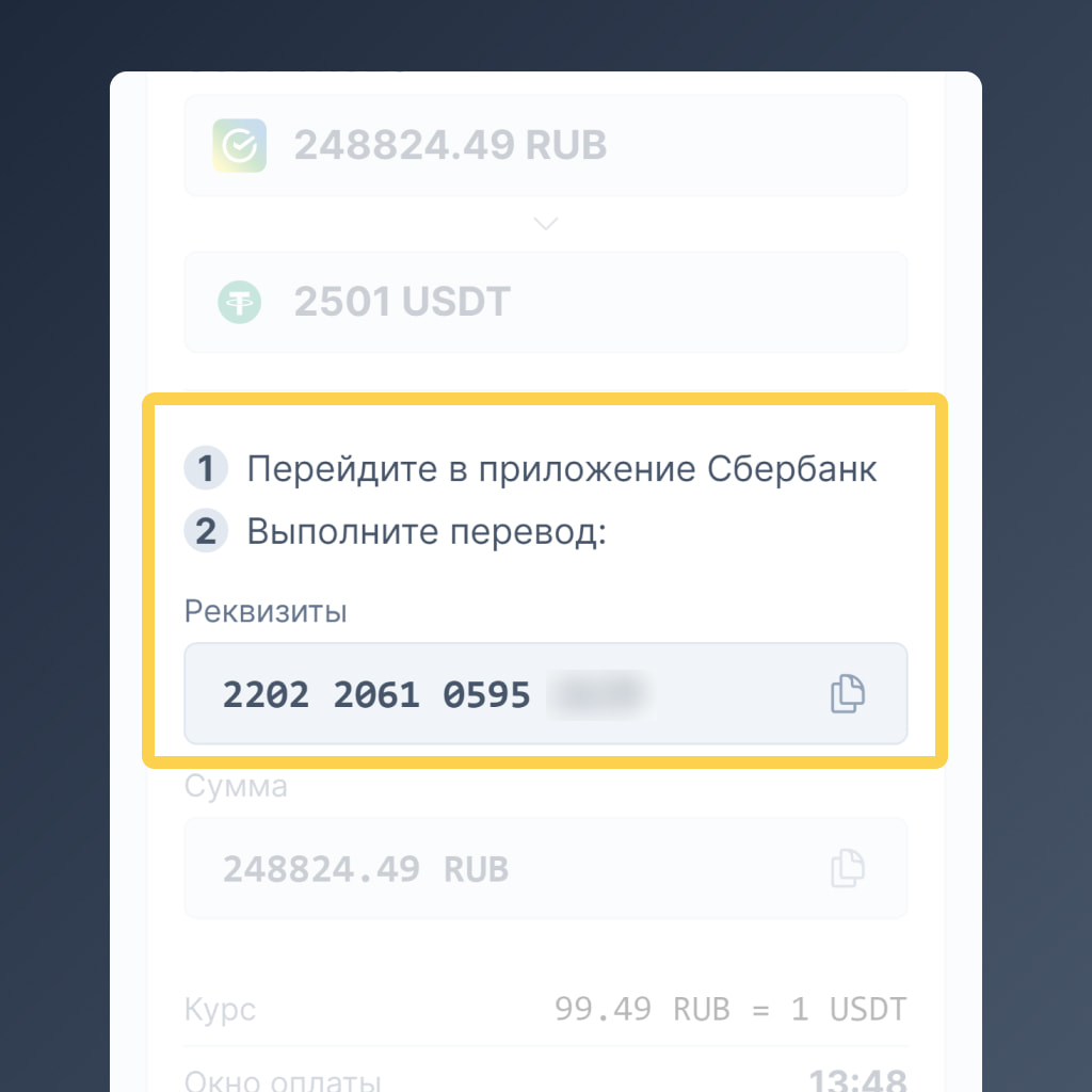 Переведите сумму, которую хотите обменять, выбранным способом.